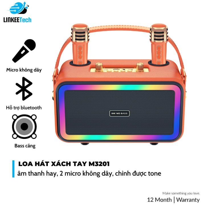 Loa Bluetooth BOOMS BASS M3201 Sang Trọng Công Suất Lớn Bass Cực Căng Kèm 2 Micro