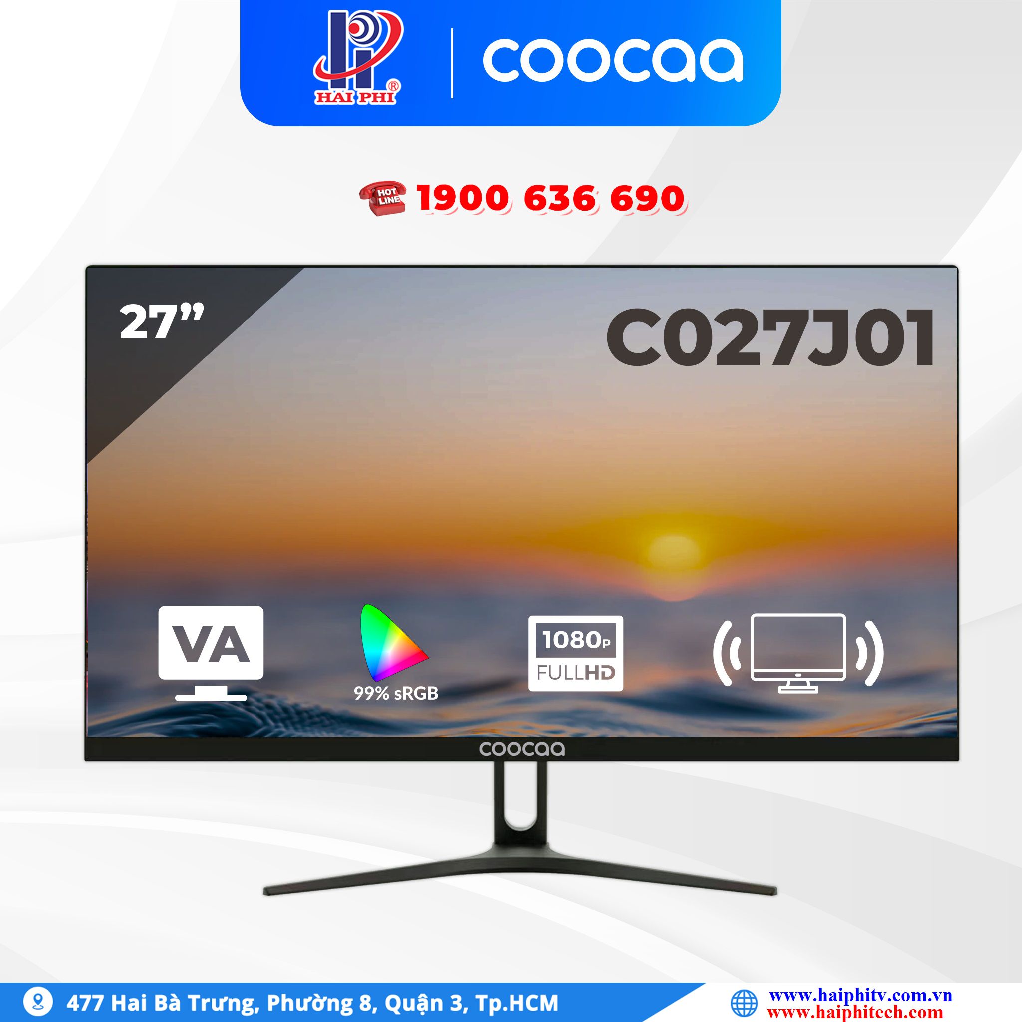 Màn hình máy tính C027J01 COOCAA 27" VA Full HD 75Hz VESA sRGB 99%