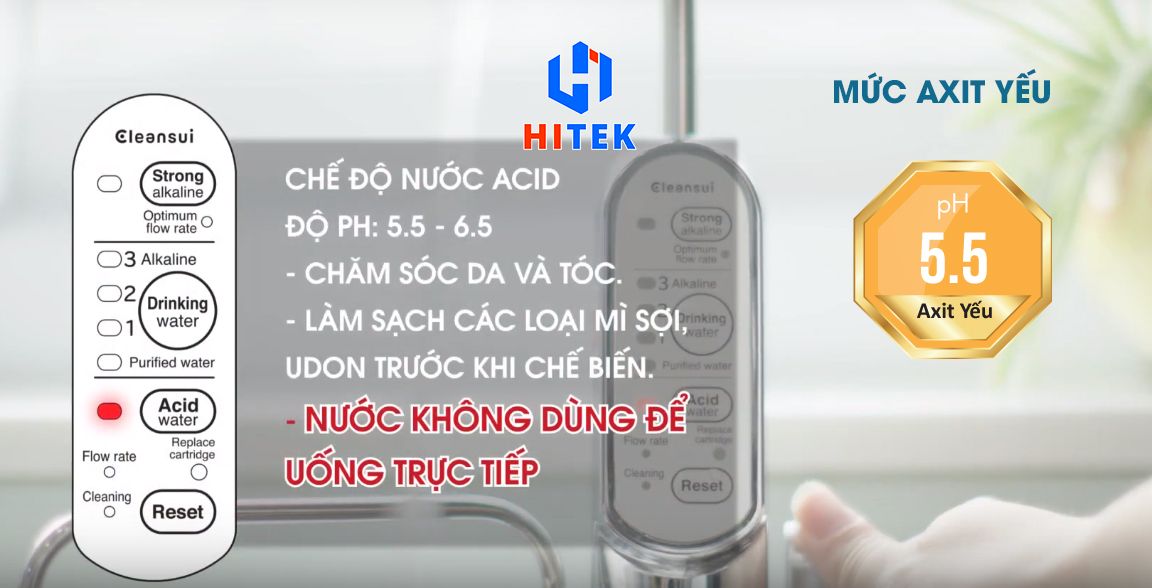 Bạn có thể sử dụng nước Axit yếu có PH – 5.5 để dùng trong sinh hoạt hàng ngày. Sử dụng thời gian dài, hiệu quả sẽ cảm nhận rõ rệt: