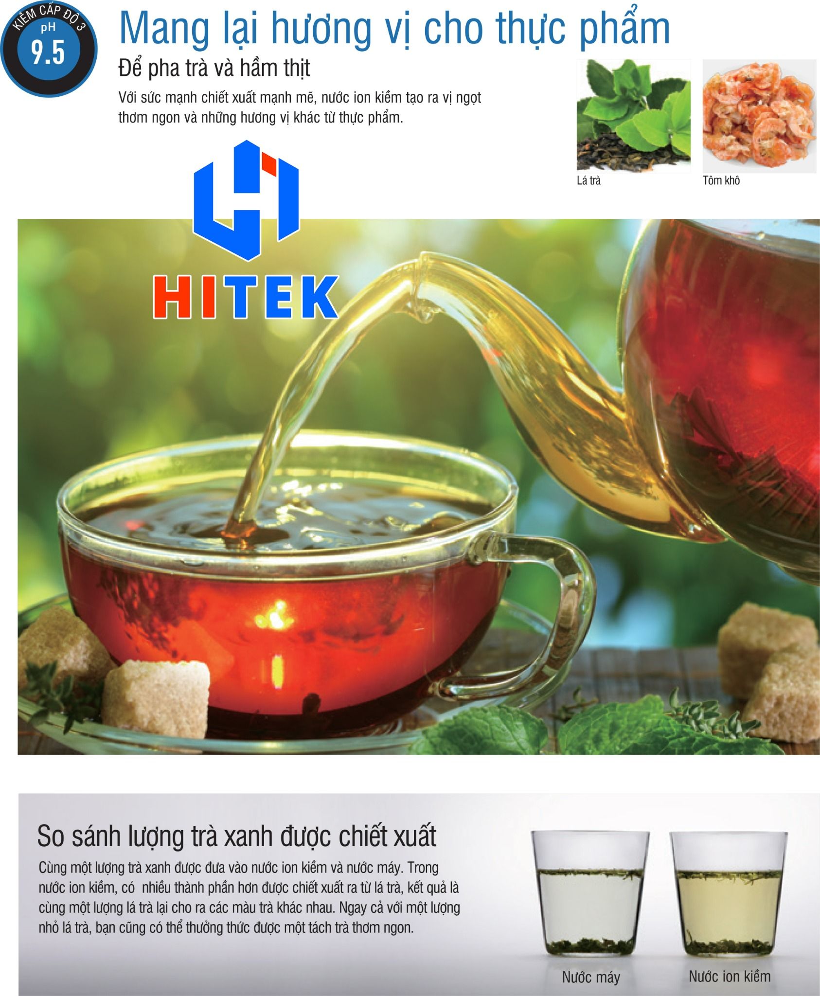 3) Nước Kiềm cấp độ 3 (Alkaline 3) – pH 9.5: nước uống, pha trà,nấu súp và hầm